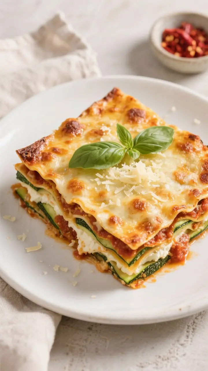 - No-soggy-strips method: Properly salted and pre-baked zucchini slices keep the lasagna sturdy and sliceable.