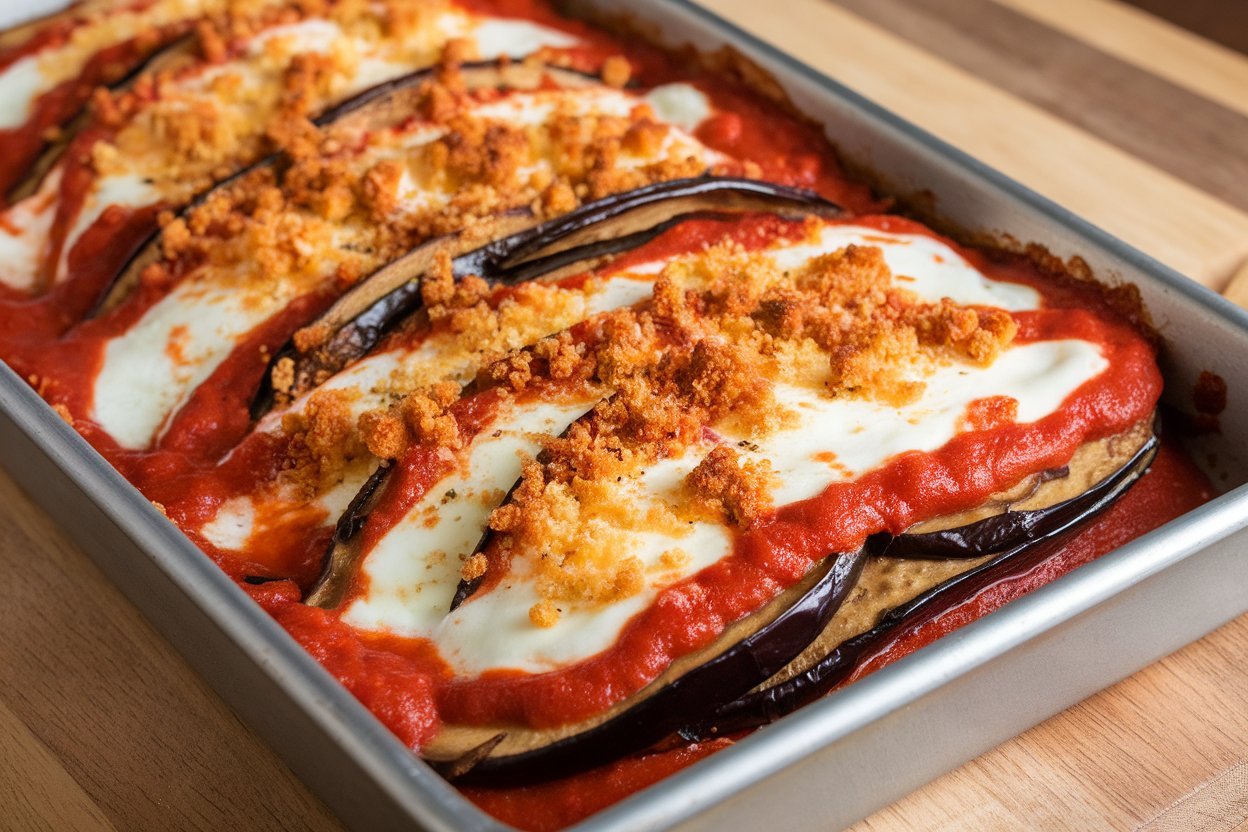 Let’s get something straight: Eggplant Parmigiana is not diet food. It’s not “light.” It’s not “clean eating.” It’s eggplant deep-fried, layered with tomato sauce, cheese, and baked until it’s bubbly and glorious.