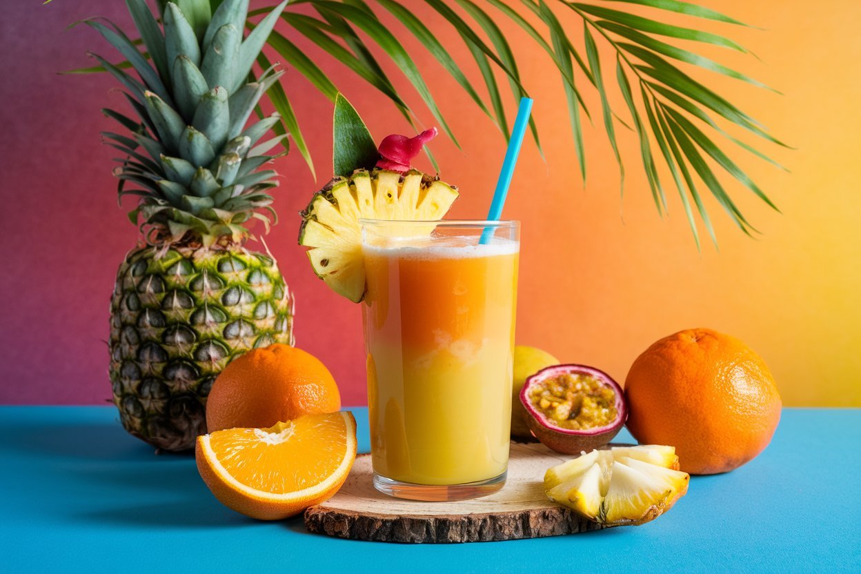 Tropical Sunrise: Pineapple, Orange, and Passion Fruit Juice