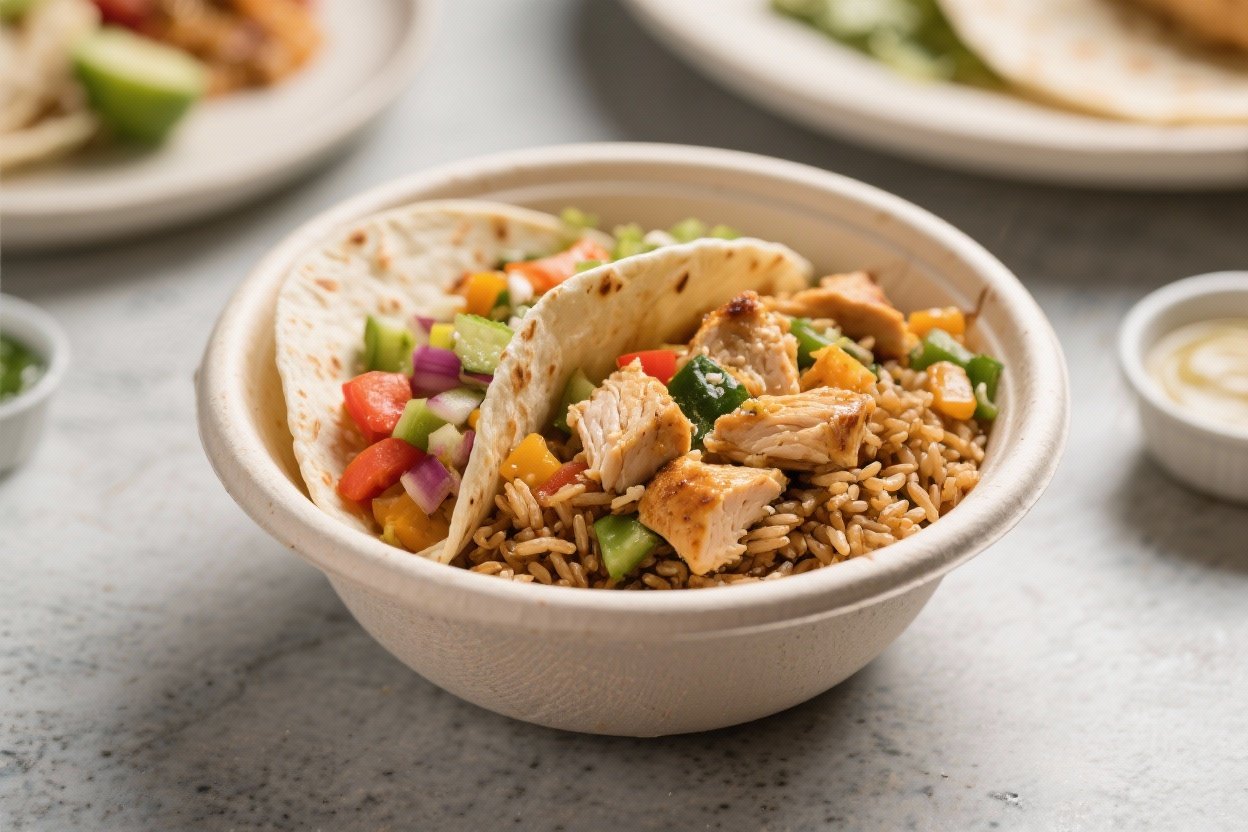 - Meal prep: Divide rice, chicken, peppers/onions, corn, and beans into airtight containers. Keep fresh toppings like avocado, tomatoes, and cilantro separate.