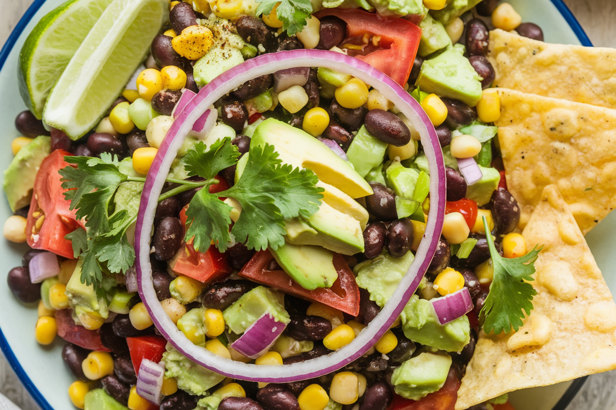 This combo hits all the checkpoints: protein from black beans, healthy fats from avocado, and a citrus-lime dressing that wakes up your taste buds. The sweet crunch of corn and bell pepper balances the richness, while red onion and jalapeño add heat and bite.