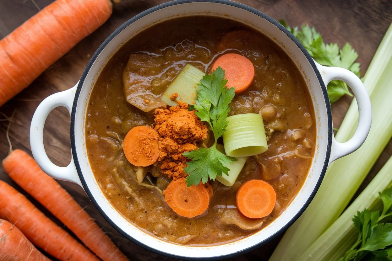 Celery is a good source of antioxidants and vitamins. Turmeric boasts powerful anti-inflammatory properties thanks to its active compound, curcumin. This stew is naturally low in calories and fat, making it a great choice for weight management.